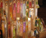 to miejsce przepelnione cieplem i energia, miejsce gdzie przyziemne daje upust sztuce. Stad wlasnie z pod precyzyjnego pedzla odlatuja w swiat moje anioly. Poczawszy od lupanego gonta przez inne szlachetne a jakze naturalne materialy takie jak jedwab, len czy bawelna Az po ceramike toczona na tradycyjnym kole garncarskim. Natura jest dla mnie inspiracja. Anioly tańczące na moich gontach malowane są z prawdziwą pasją Tkaniny wychodzące spod mojego pedzla nabieraja barwnych, kwiatowych lub geometrycznych wzorow Ceramika również nabiera zycia poprzez świeze kolory i fikuśne wzory Oprocz oryginalnej formy przekazu mojej twórczości, maluje także na plotnie Starym meblom i innym przedmiotom np. beczkom, maselniczkom nadaje nowe Zycie. Moje prace można spotkac głownie na terenie Rzeszowa i Bieszczad ale także w Krakowie Warszawie Kazimierzu. Ostatnie moje wystawy odbyly się w galerii ‘dzwonnica’ w Wilanowie i w galerii ‘barak’ w miejscowości Czarna w Bieszczadach - tam zorganizowany był pokaz sukienek, szali i innych tkanin Wykonuje tez prace na indywidualne zamowienia.